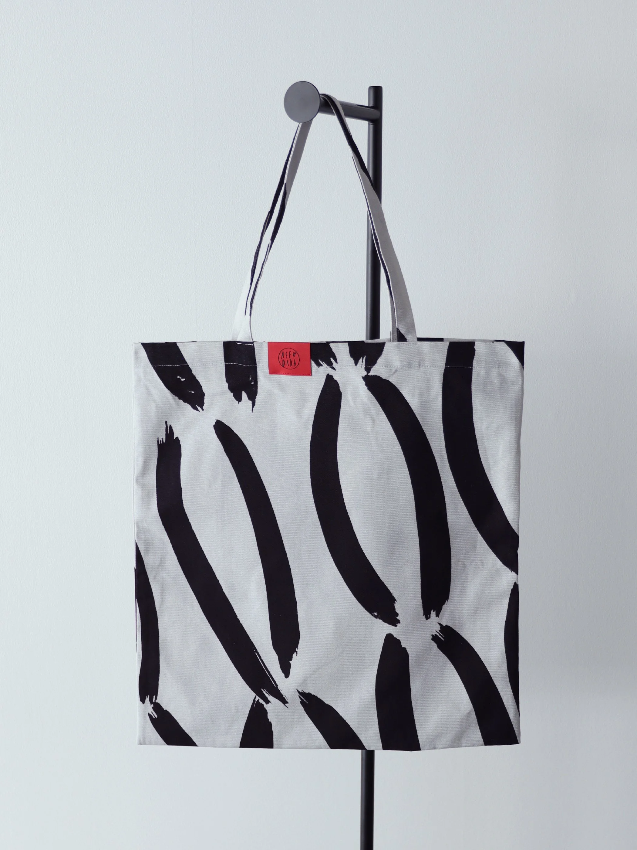 ざっくりと編み込んだ網目。自分でシルクスクリーンで手刷りするために描き下ろした図案。